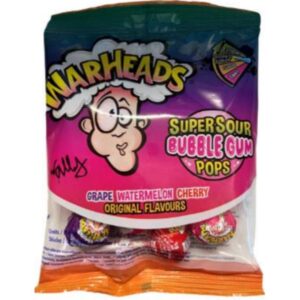 Pulgakommid Warheads Fruity Super Sour Bubblegum Pops 105g