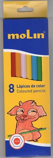 VÄrvipliiatsid kuuekandiline kuju 8 värvi Molin