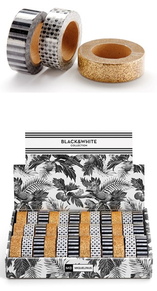Kleeplindid 2tk 15mmx10m erinevate kujundustega Black&White Washi Miquelrius